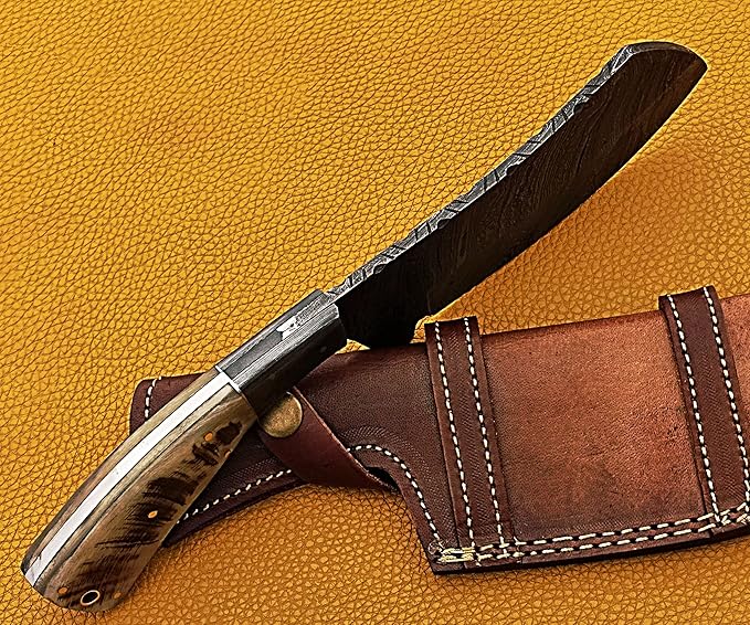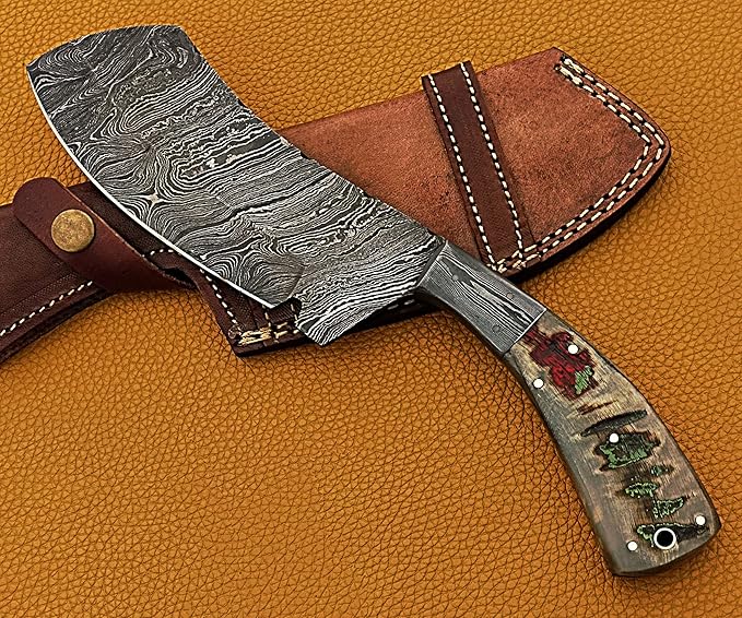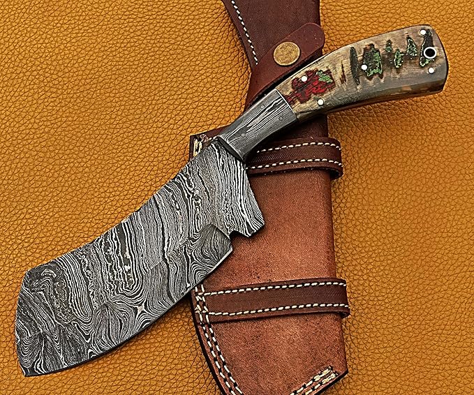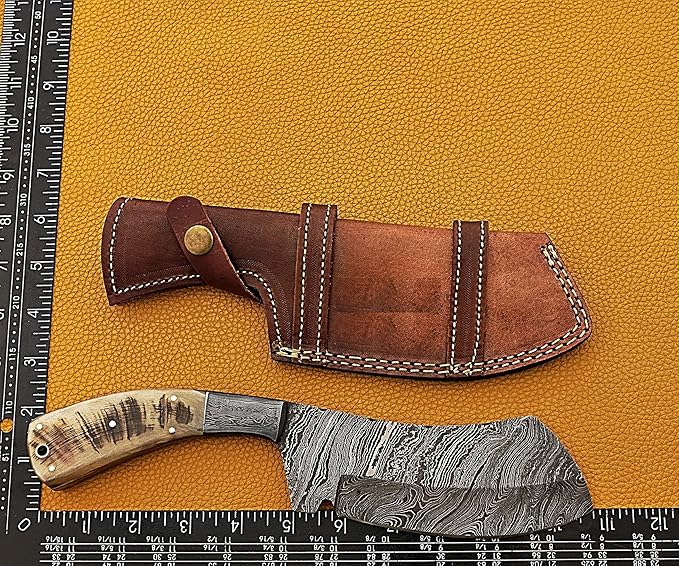 - Comes with thick cow hide Leather sheath. Sheath is equipped with 2 belt inserting loop