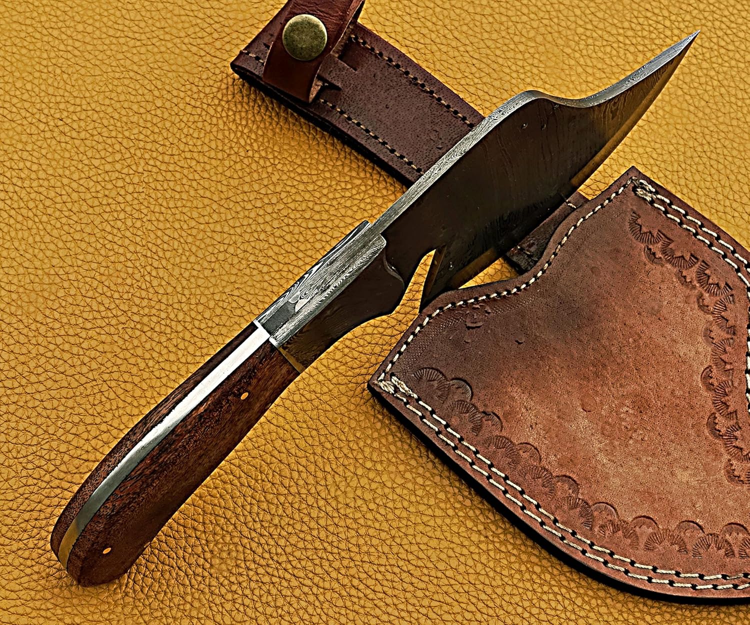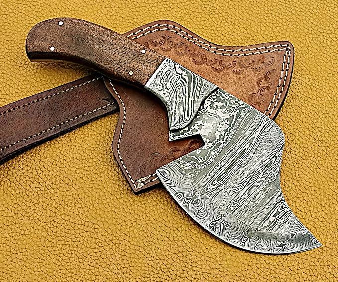 - 4.5″ long Natural Walnut wood scale with Damascus steel bolster