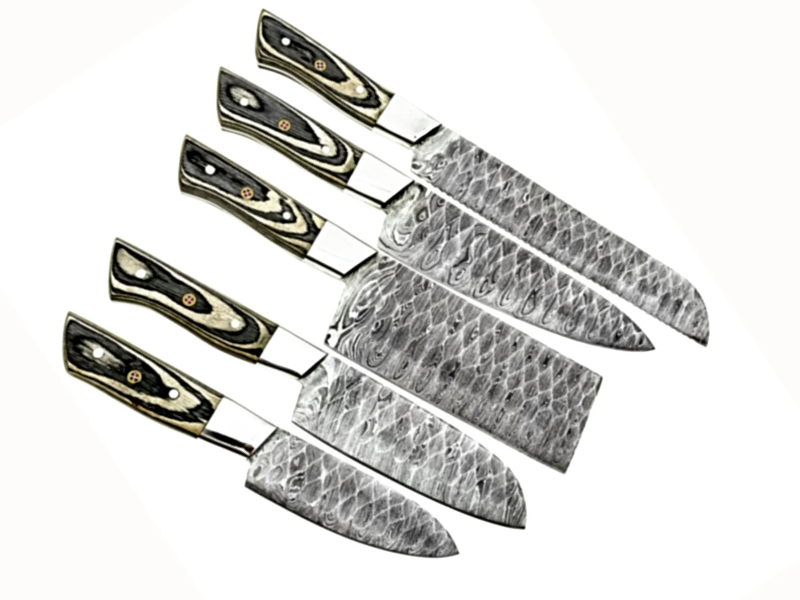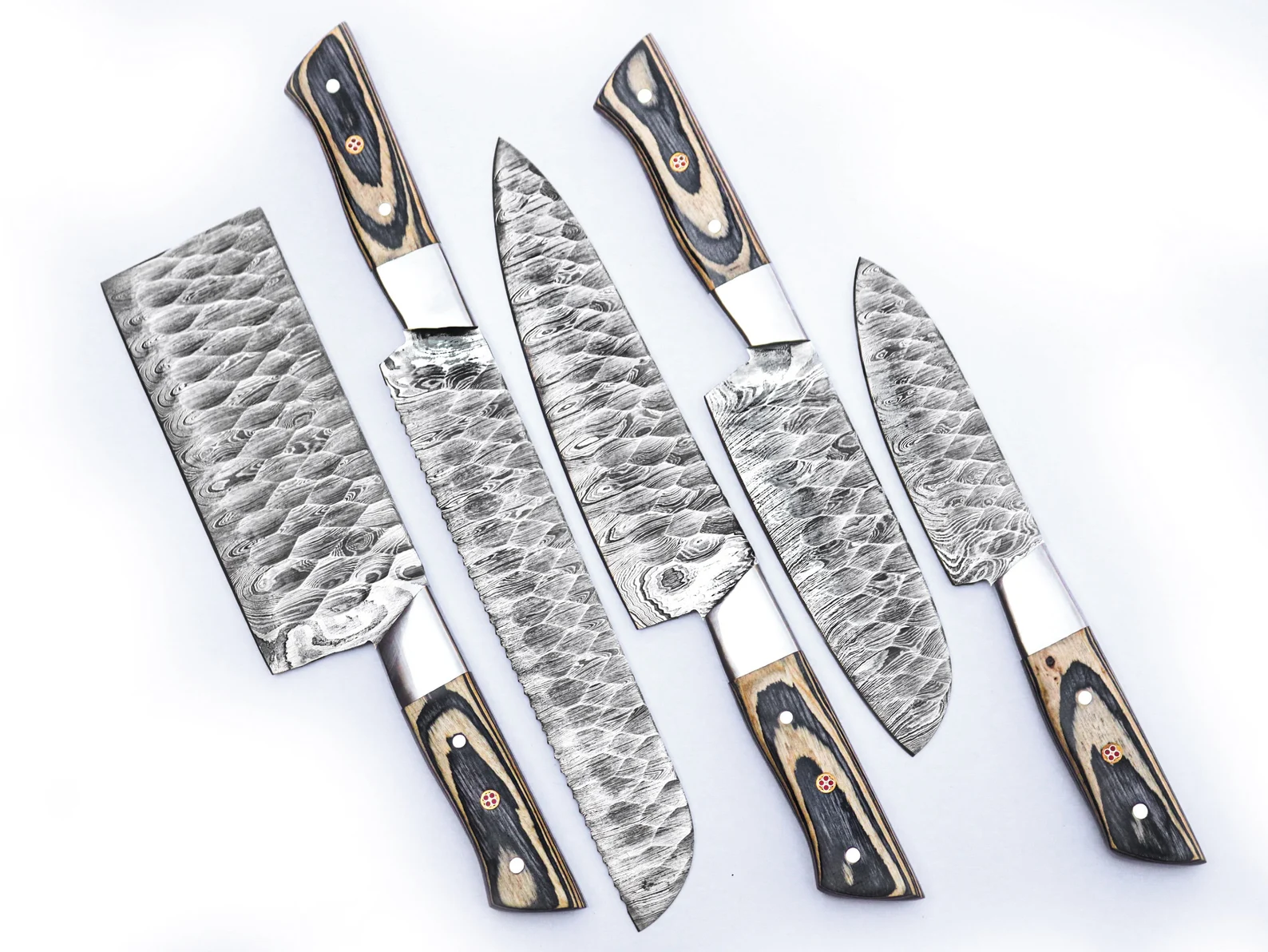 5 pcs Damascus Kitchen Knife set – Pakka Wood handle