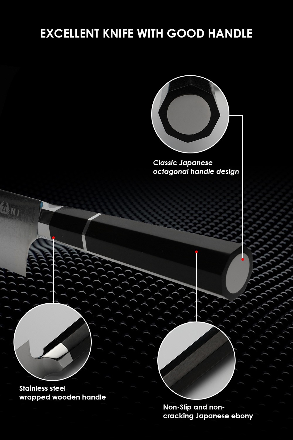 Its textured blade looks amazing and prevents food from sticking, while the sharp edge makes slicing effortless. Balanced, comfortable, and versatile—perfect for sushi, veggies, or meat. Feels like a professional knife at home. Highly recommended!