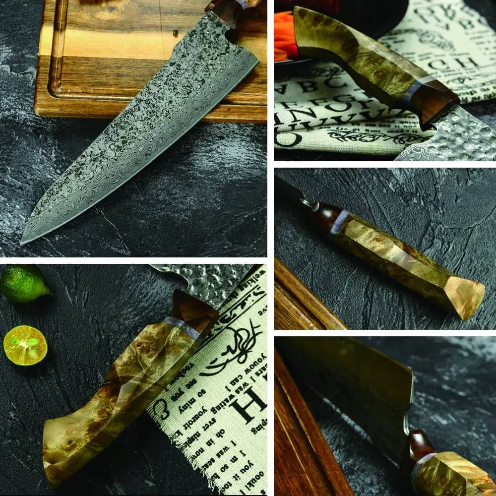 Damascus 10Cr15CoMoV Stabilized Wood Gyuto 212mm