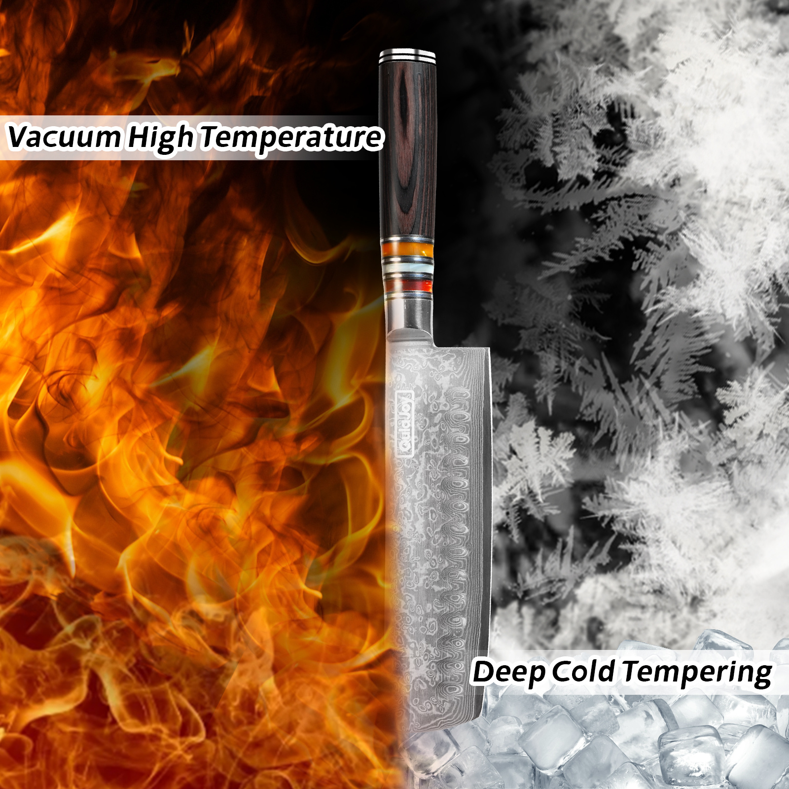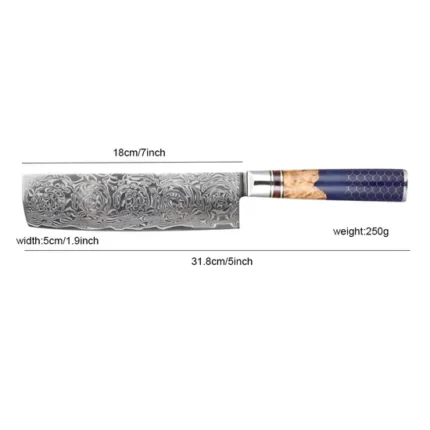 • ★Professional Nakiri Knife: Japanese 7-inch nakiri knife uses Japanese VG-10 steel core, made of 67 layers damascus steel, HRC 60±2, with excellent corrosion resistance and rust resistance. Hand ground by our expert craftsmen for a clean, flat, sharp cutting edge. The Nakiri knife is also called a kitchen knife. It has superior performance and is characterized by slicing, dicing and chopping.